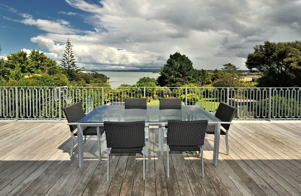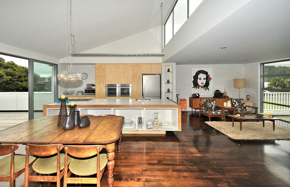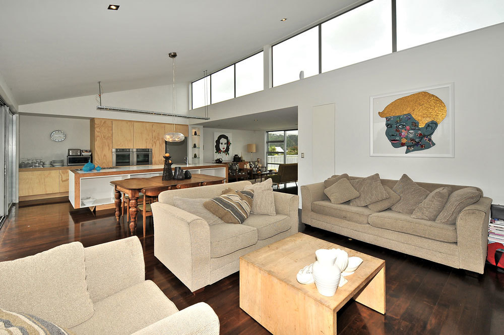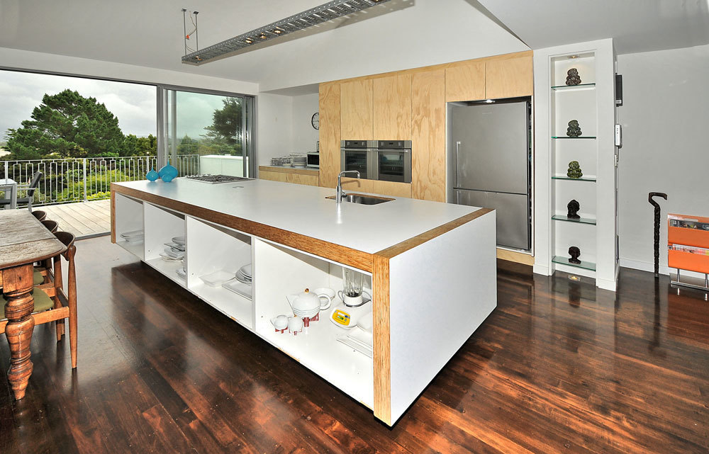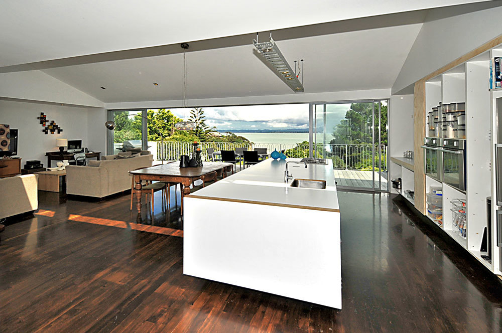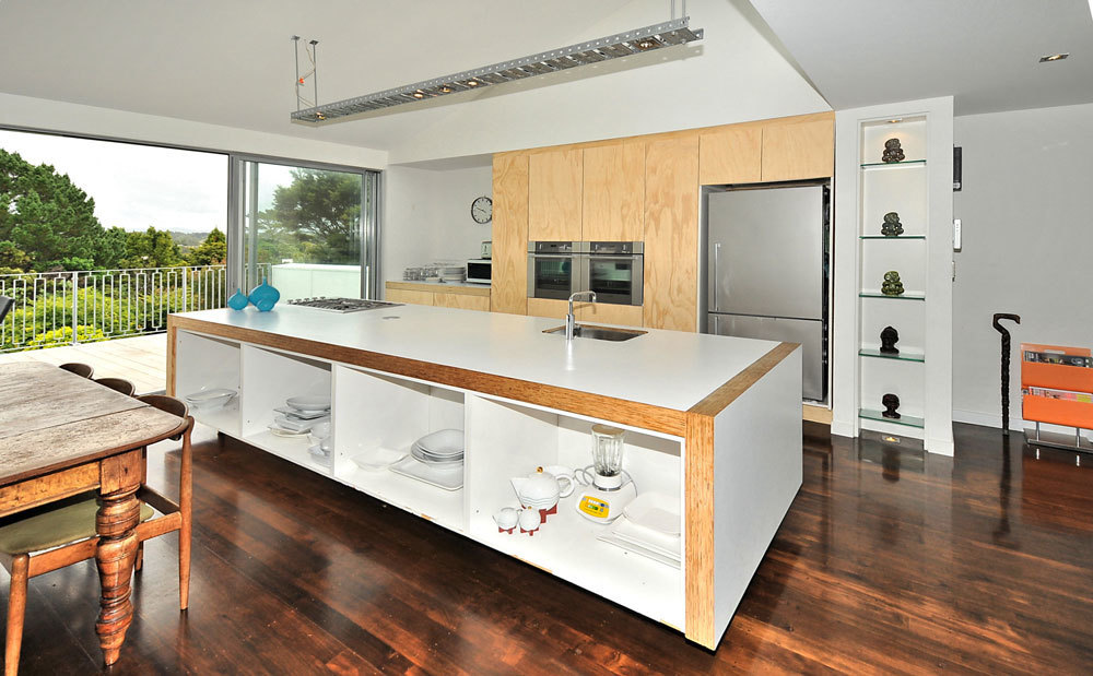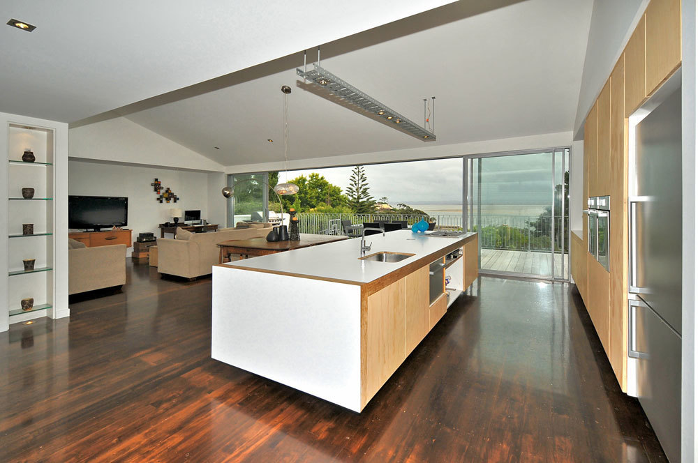 A designer kitchen is a centrepiece of this home with a stunning outlook out to the sea